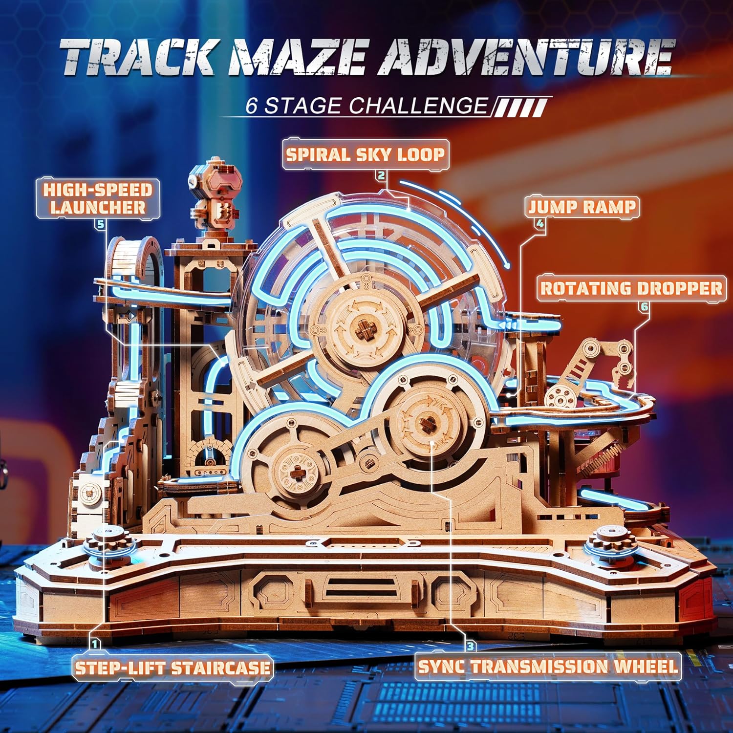 Experience the ultimate test of strategy and speed with the ROKR Gear Ball Challenge 3D Wooden Puzzle. This interactive marble run combines engineering precision with thrilling gameplay—build the puzzle, then master its mechanics. Control the ball's path using switches, dials, and knobs to navigate transparent tracks, jump ramps, and high-speed ejection channels. The automated lift system powers your journey while the separator wheel adds unpredictable challenges. Race against yourself to reach the finish line fastest, trigger the copper bell, and claim victory. Perfect for puzzle enthusiasts and competitive players seeking a dynamic, hands-on challenge that rewards both construction skill and tactical thinking.