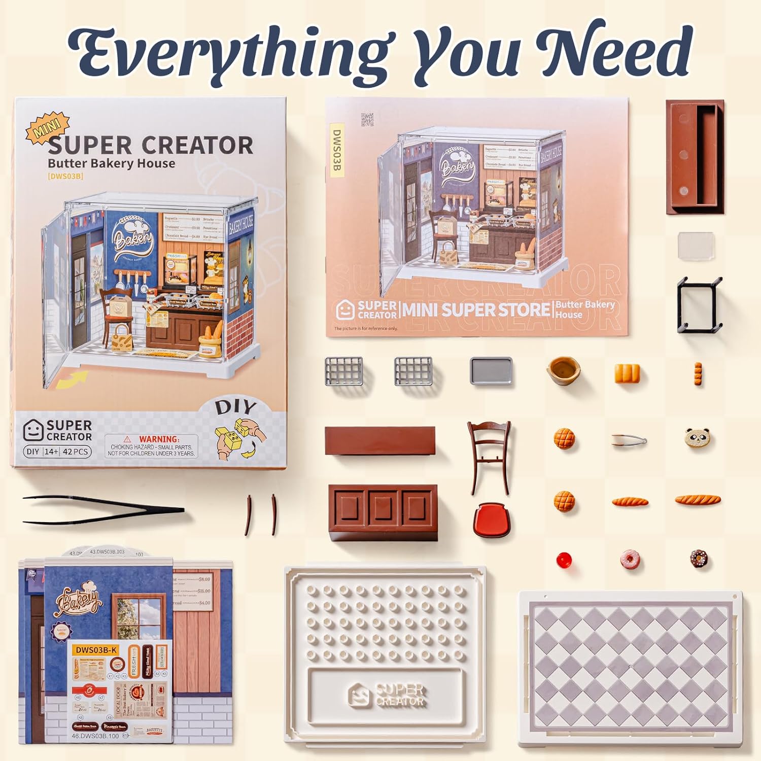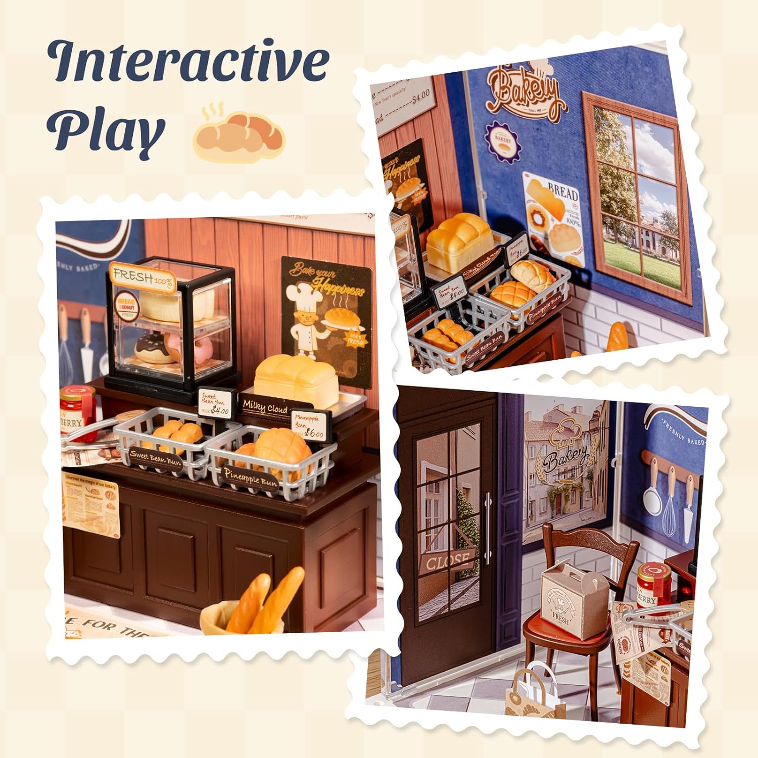 Step into Rolife's charming Butter Bakery House, a meticulously detailed DIY miniature that captures the warmth of an artisanal bakery. This engaging build features an authentic shopfront complete with display cases showcasing sourdough, bagels, pastries, and donuts. Assemble the intricate components to reveal a fully realized bakery experience, from the menu board with pricing to branded takeout boxes. Perfect for miniature enthusiasts and collectors, this model combines craftsmanship with nostalgic charm, offering hours of satisfying assembly and a stunning finished display piece that celebrates the timeless appeal of a neighborhood bakery.