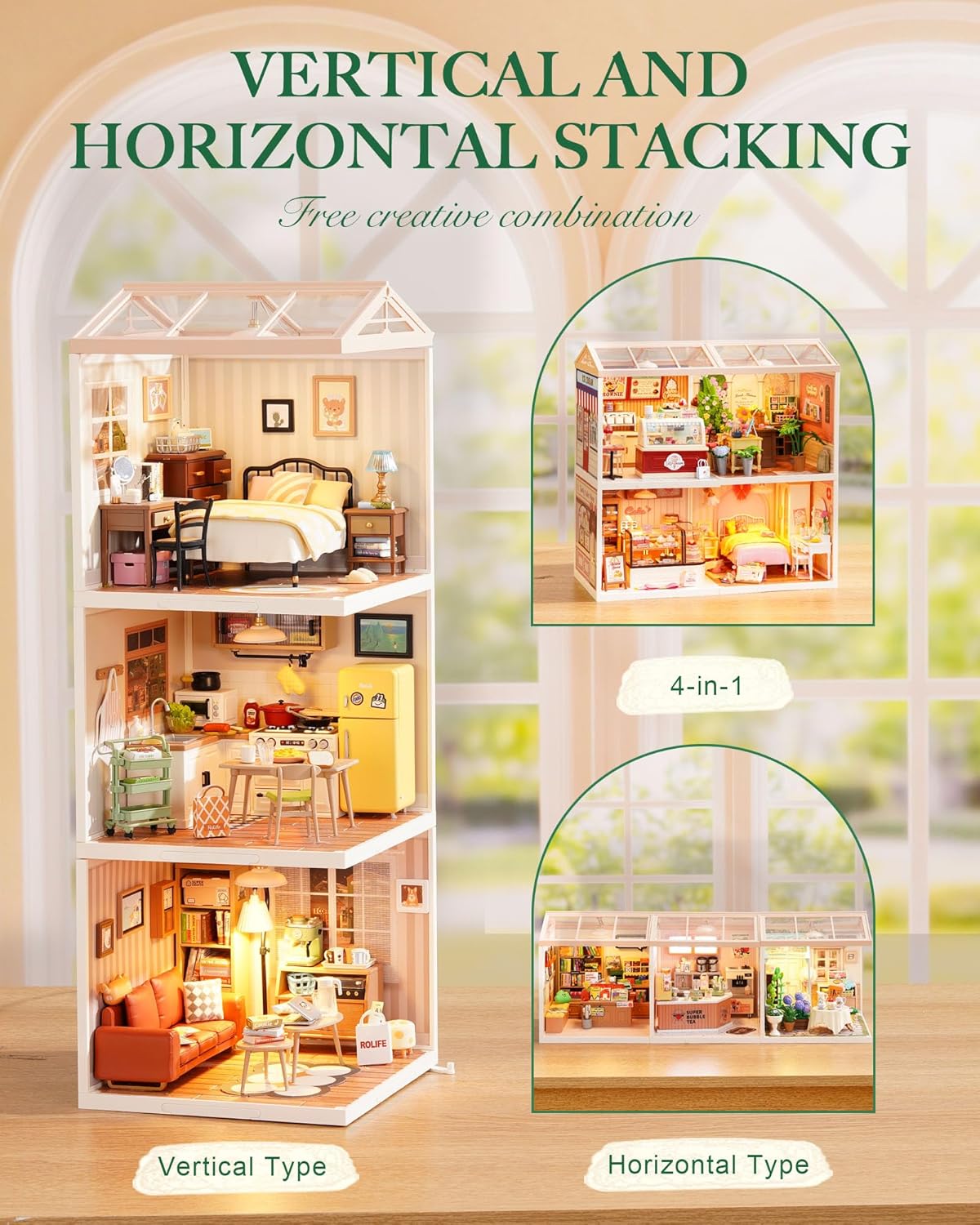 Rolife's Fresh Flower Shop brings miniature retail magic to life with this 152-piece DIY house from the Super Creator Series. Build a charming flower boutique complete with a detailed counter, working gumball machine, mini-fridge, and vibrant floral displays. The set features intricately crafted blooms, potted plants, trendy magazines, and decorative signage that capture the essence of a modern flower shop. Perfect for creative builders seeking an engaging project that combines construction with imaginative play, this miniature world encourages hands-on skill development while celebrating the joy of entrepreneurship and botanical beauty.