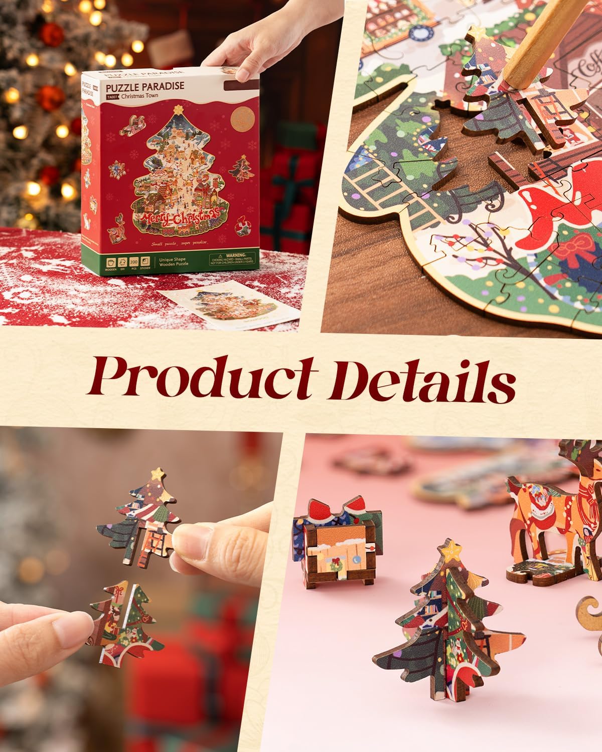 Discover the enchantment of the holiday season with the Rowood Christmas Town Wooden Jigsaw Puzzle TA007. This distinctive tree-shaped puzzle transports you to a picturesque winter village brimming with festive charm and twinkling lights. Each carefully crafted wooden piece reveals charming street scenes and holiday details that capture the warmth of Christmas traditions. Perfect for puzzle enthusiasts and seasonal decorators alike, this unique design combines the joy of assembly with stunning visual appeal. Ideal for creating memorable moments with family and friends during the festive period.