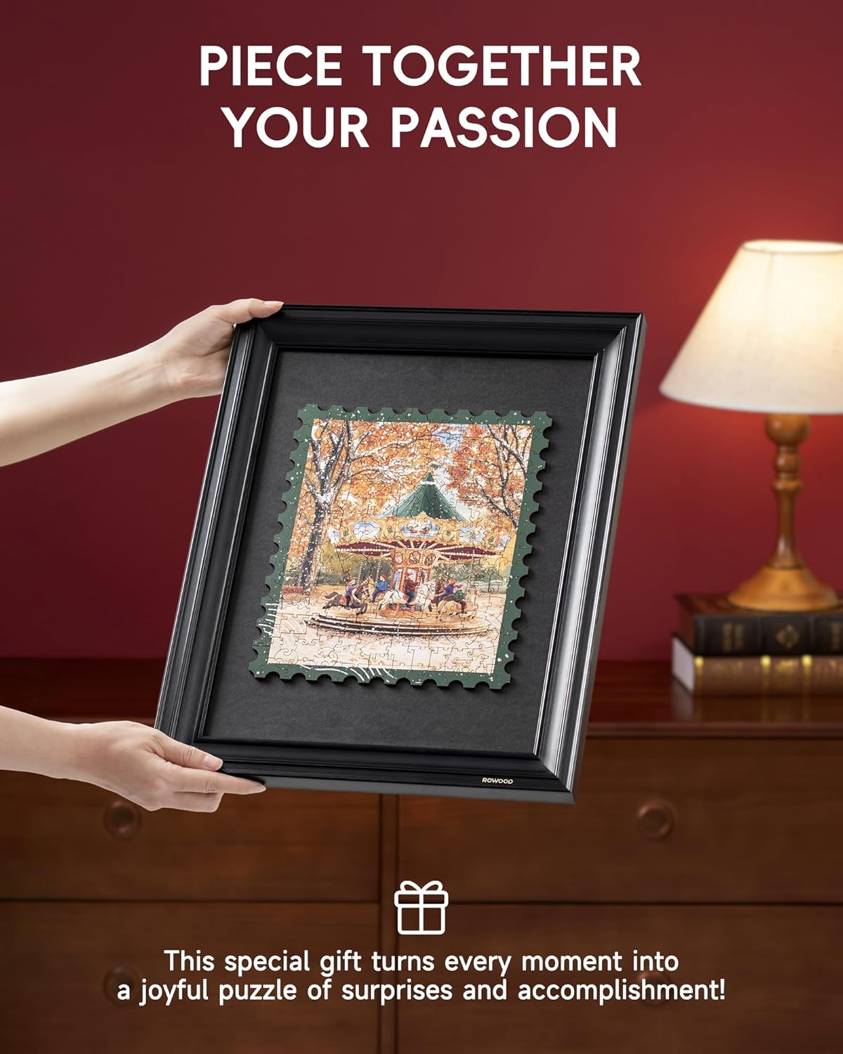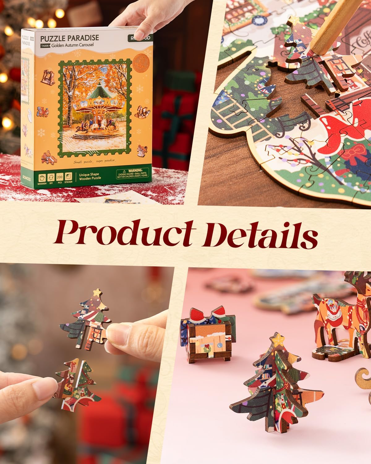 Experience the charm of a golden autumn afternoon with this exquisite wooden jigsaw puzzle. The Rowood Golden Autumn Carousel captures a nostalgic carousel scene framed by falling leaves, rendered in intricate detail. Crafted from premium wood pieces, this puzzle offers both a rewarding building experience and a stunning display piece. Perfect for puzzle enthusiasts seeking a blend of artistic beauty and engaging craftsmanship, it transports you to a serene park setting with every piece placed. An ideal gift for those who appreciate fine wooden puzzles and timeless autumn aesthetics.